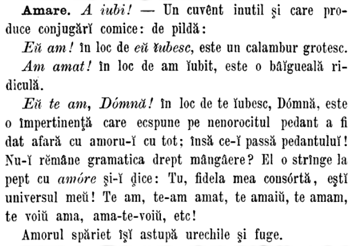 Cum se face că a dispărut verbul amare din română? Prozaica omonimie cu a avea l-a eliminat. Cum ar suna să-i zici unei domnișoare în zilele noastre: te am? 😵💫 E fascinant fenomenul prin care limba își face singură curățenie în propria ogradă respingând cuvintele care produc confuzii. Poetic spus, amorul spăriet și-a astupat urechile și a fugit, iar lui Alecsandri dorința i s-a împlinit: