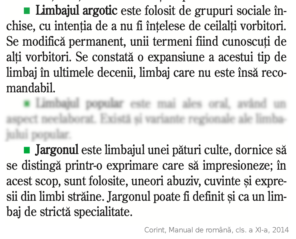 Cu alte cuvinte, dacă ar fi să ne luăm după dicționarele noastre, argoul e folosit de săracii needucați, iar jargonul, de bogații spudaxiți 😳 De unde până unde? Cine a hotărât? Și când? Manualele de română care circulă azi prin școli confirmă enormitatea: