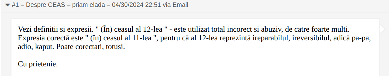 Și dacă nu v-a plăcut, scrieți-ne. Ne-am obișnuit să fim și certați – de obicei, pentru greșelile altora (ale autorilor de dicționare) –, dar primim cu interes și criticile care ne privesc direct.