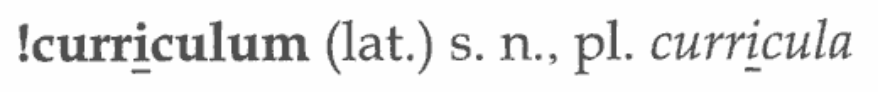 Cuvântul pe care ni-l semnalează Călin este o adaptare stângace a unui termen latinesc, binecunoscut deja din expresia curriculum vitae „cursul vieții”. În latină, curriculum este forma de singular, iar curricula, cea de plural. Această formă de plural, în epoca contemporană, s-a specializat în domeniul educației, unde reprezintă parcursul elevului sau al studentului, adică ansamblul de cursuri oferit de o instituție de învățământ, care formează o arie de specializare. Cele două forme latinești de singular și de plural sunt preluate ca atare și în limba română, fapt atestat în DOOM³: