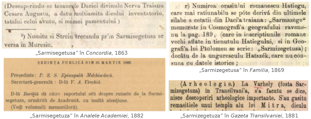 Sarmizegetuza, 1881, Gazeta Transilvaniei;